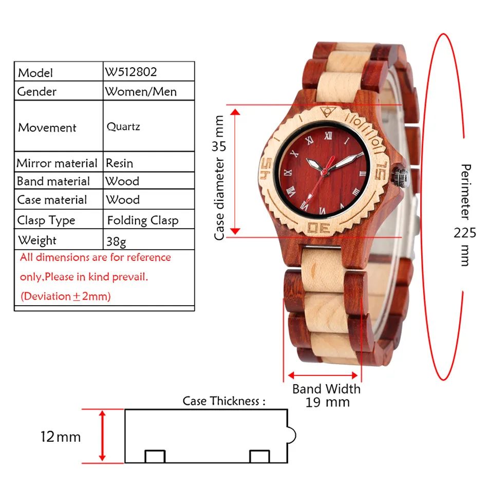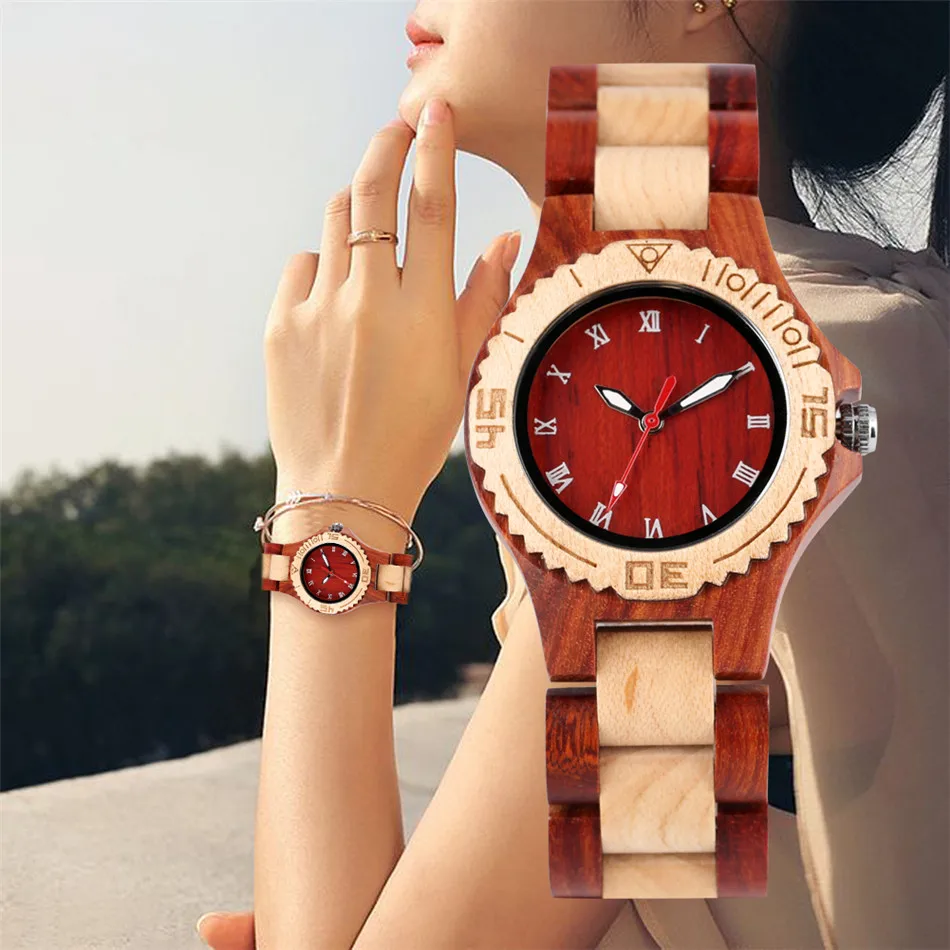 HOT Sale REDFIRE White Roman Numerals Analog Women's Watch Natural Wooden Case Watchband Folding Clasp Quart